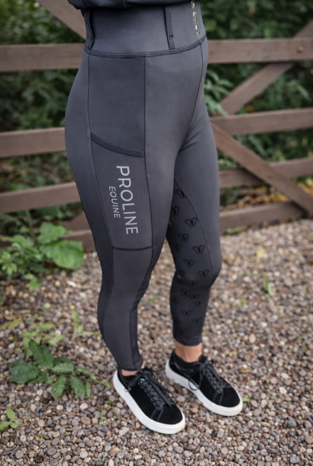 Designed with both performance and everyday practicality in mind, these leggings feature belt loops for styling versatility and a deep thigh phone pocket for secure storage while at the yard or in the saddle. The absence of an inside leg seam ensures a smooth, comfortable fit for those who prefer it. Finished with luxury branded buttons and bold Proline Equine detailing, they deliver a polished, premium look that stands out while remaining highly functional.